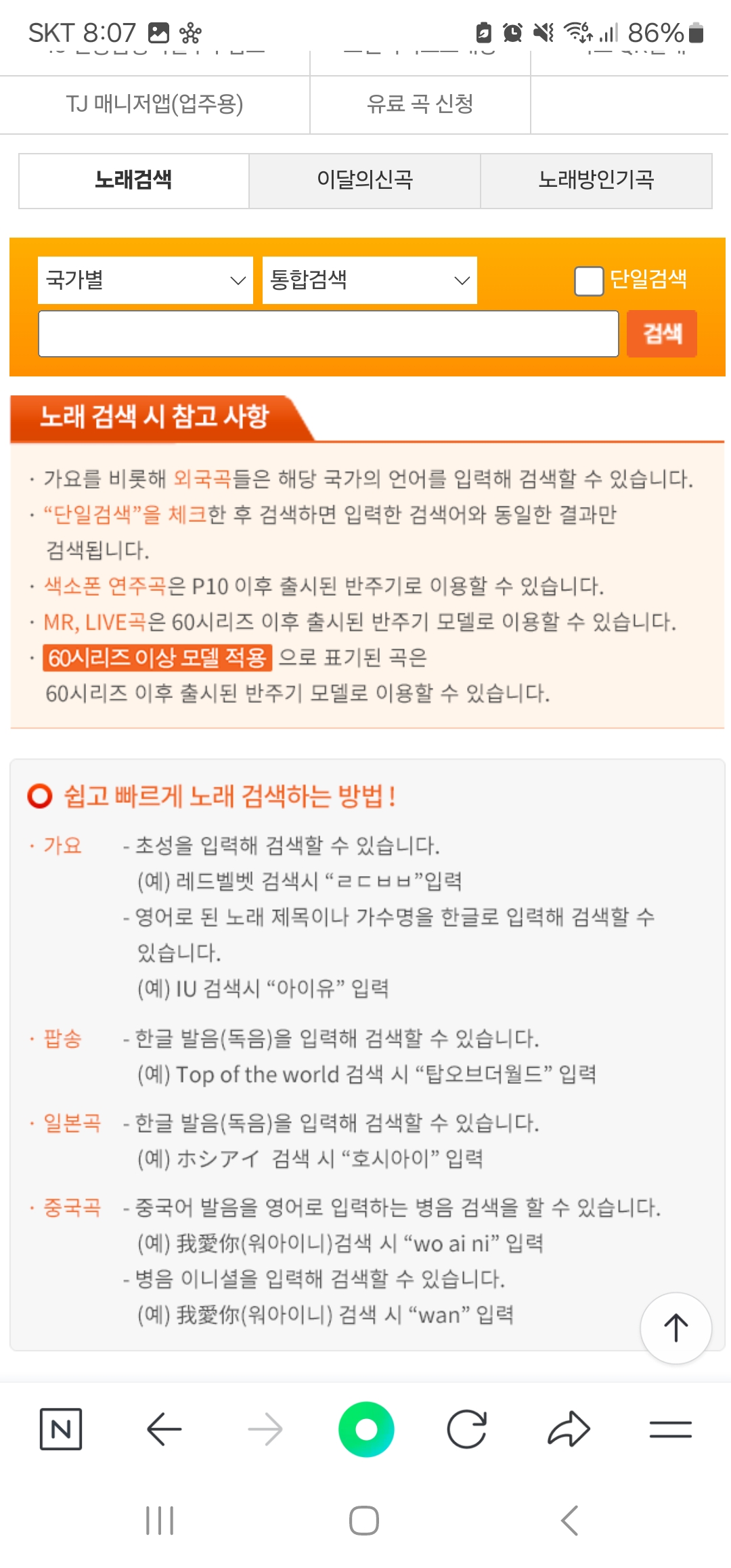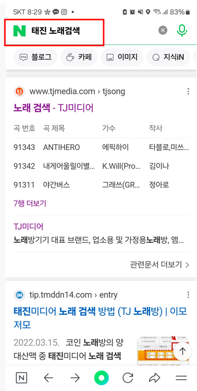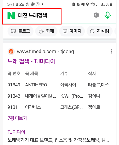 태진 노래찾기 검색창에 부르고 싶은 노래를 검색하면 되는데요.