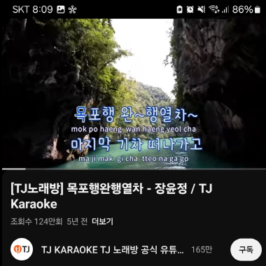 바로 노래방 화면과 똑같은 반주와 화면이 나온다는 것입니다. 비록 마이크는 없지만 반주를 들으며 노래를 언제 어디서나 부를 수 있습니다.